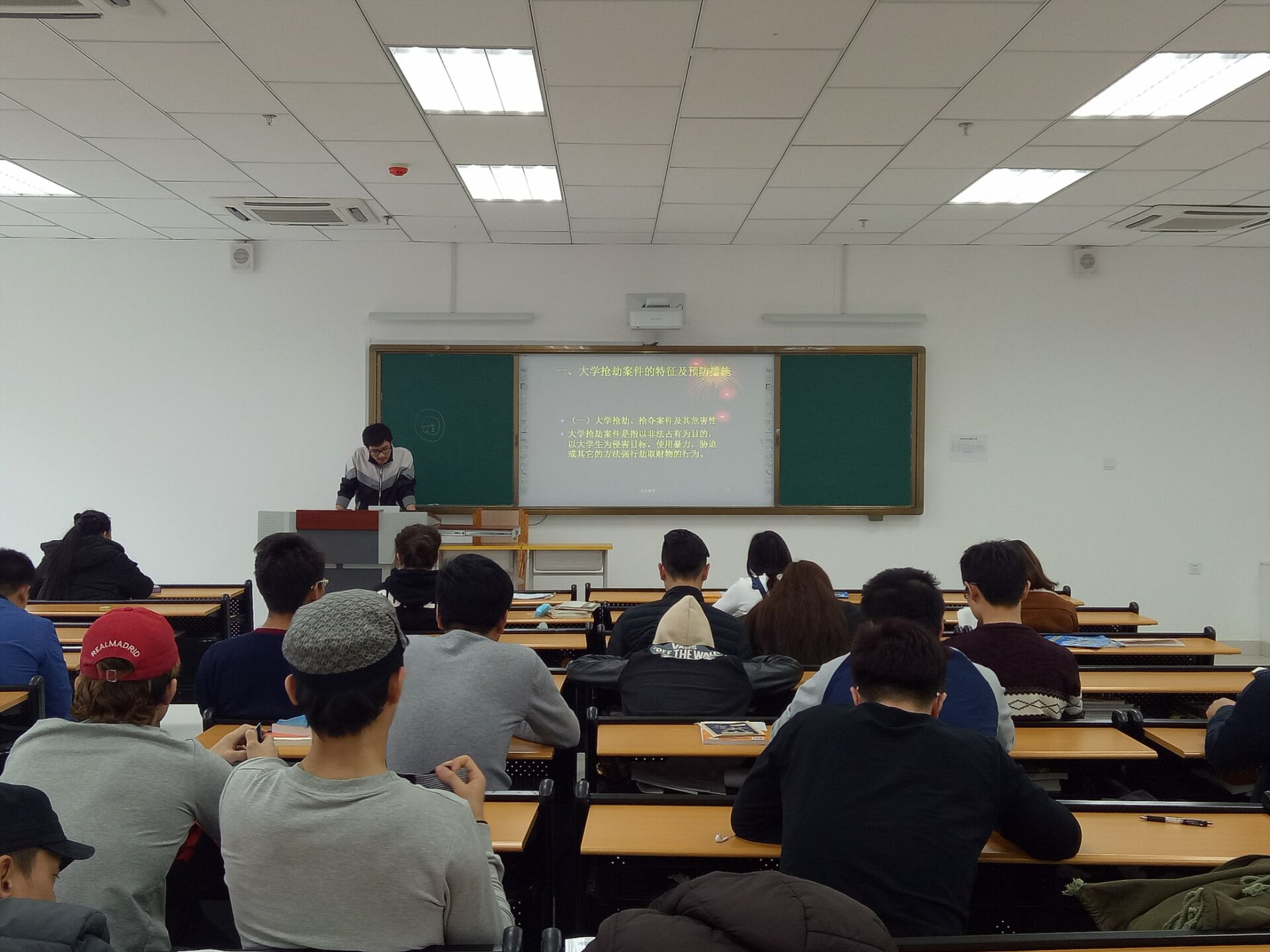 首先,主持人杨营同学为大家讲述了,关于大学生安全教育的预防以及如何避免此类事件发生的相关知识,并随机提问同学们,遇到突发事故改如何处理,课堂互动良好,同学们认真听讲,对安全教育有了一定的认识。接着,又讲到了消防安全,同学们对消防的认识并不多,通过交流分享自己的认识,同学们对预防此类消防隐患有了初步认识,更明白了学习消防安全知识的重要性。