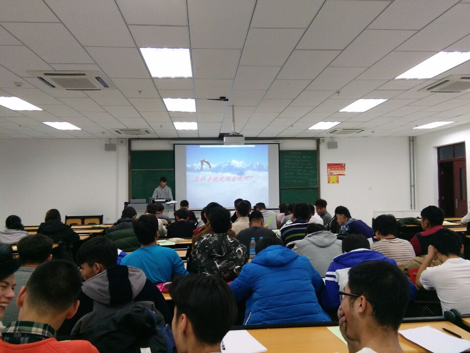 团课开始,主持人对“不断进取 超越自我”这个问题同学做了详细的解释说明,他说:每位同学都应该有超越自己的决心和信心,起实超越自己很简单,只要你每天做的比比你前天做的好,就是超越,你每天定个小目标,只要你每天实现你的小目标,就是最好的超越自己。每位同学们为自己制定短期小目标“通过期末考试”,一个个精神激昂。为自己的目标做准备。每位同学知道了“超越”一词的本质和含义团课结束后让同学了解到其实超越自己很容易,同时也间接的提高了同学们学习的动力和信心!