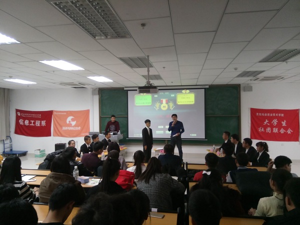 唇枪舍战,谁与争锋。11月22日,社团联合会在C2-Ⅱ-103教室开展“现代社会通才与专才那个重要”校园新生杯辩论赛。此次辩论赛由学院团委书记丁恒,学院党政办公室副主任、演辩社指导老师李桂峰,电子与电气工程系党支部书记鲁志刚担任本场比赛的评委老师,学生会主席丁烽,社团联合会主席兼学生会第一副主席魏松霖作为本场比赛的特邀嘉宾