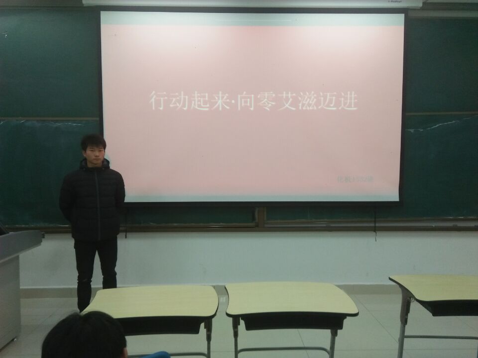 为了使同学们能够熟知艾滋病的相关知识,了解一定的艾滋病防控知识,关注艾滋病,关爱艾滋病患者。11月27日,机械工程系化机1532班C7-iii-204教室开展“行动起来.向零艾滋迈进”主题班会,本次班会由耿彪同学主持,化机1532班全体同学参加。
