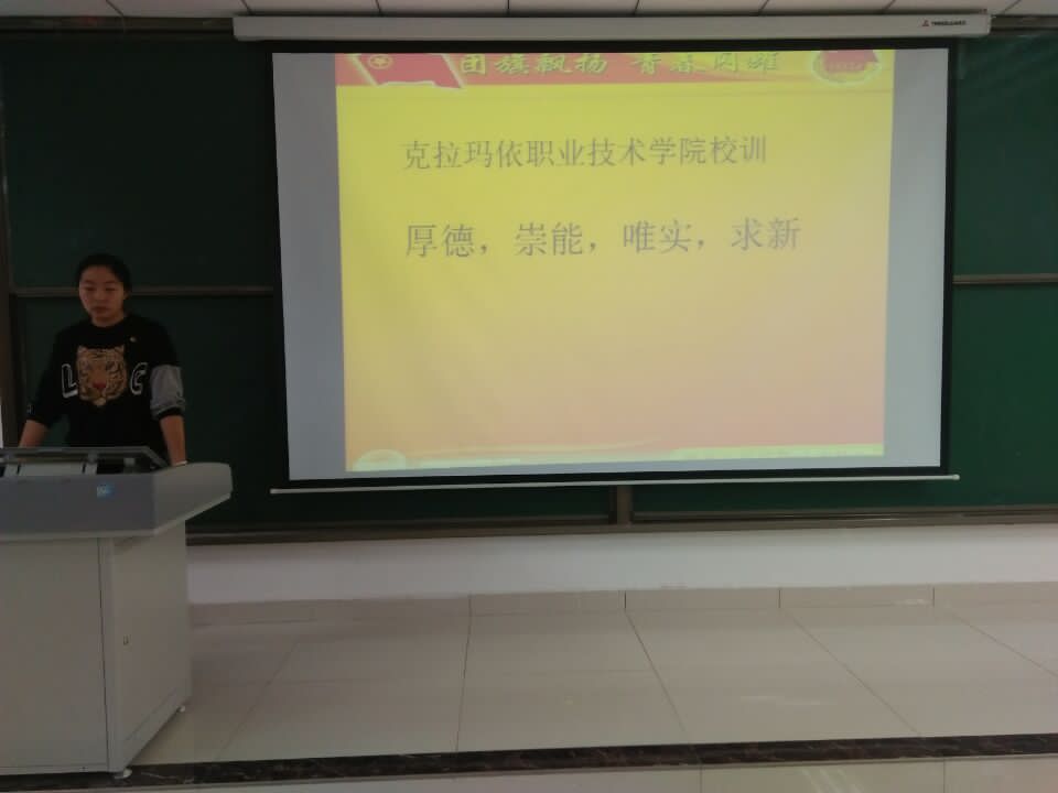 首先,主持人董苗为同学们讲解了中国共青团的性质以及中国共产主义青年团在现阶段的基本任务,让同学们对中国共产主义青年团有了更进一步的了解。接着,又为同学们讲解了团员必须履行的义务以及共青团组织的四项基本职能,使同学们清楚的认识到自己的职责和义务,积极做一个有理想、有追求、有担当、有作为、有品质、有修养的青年。最后大家学习了《克拉玛依职业技术学院章程》。