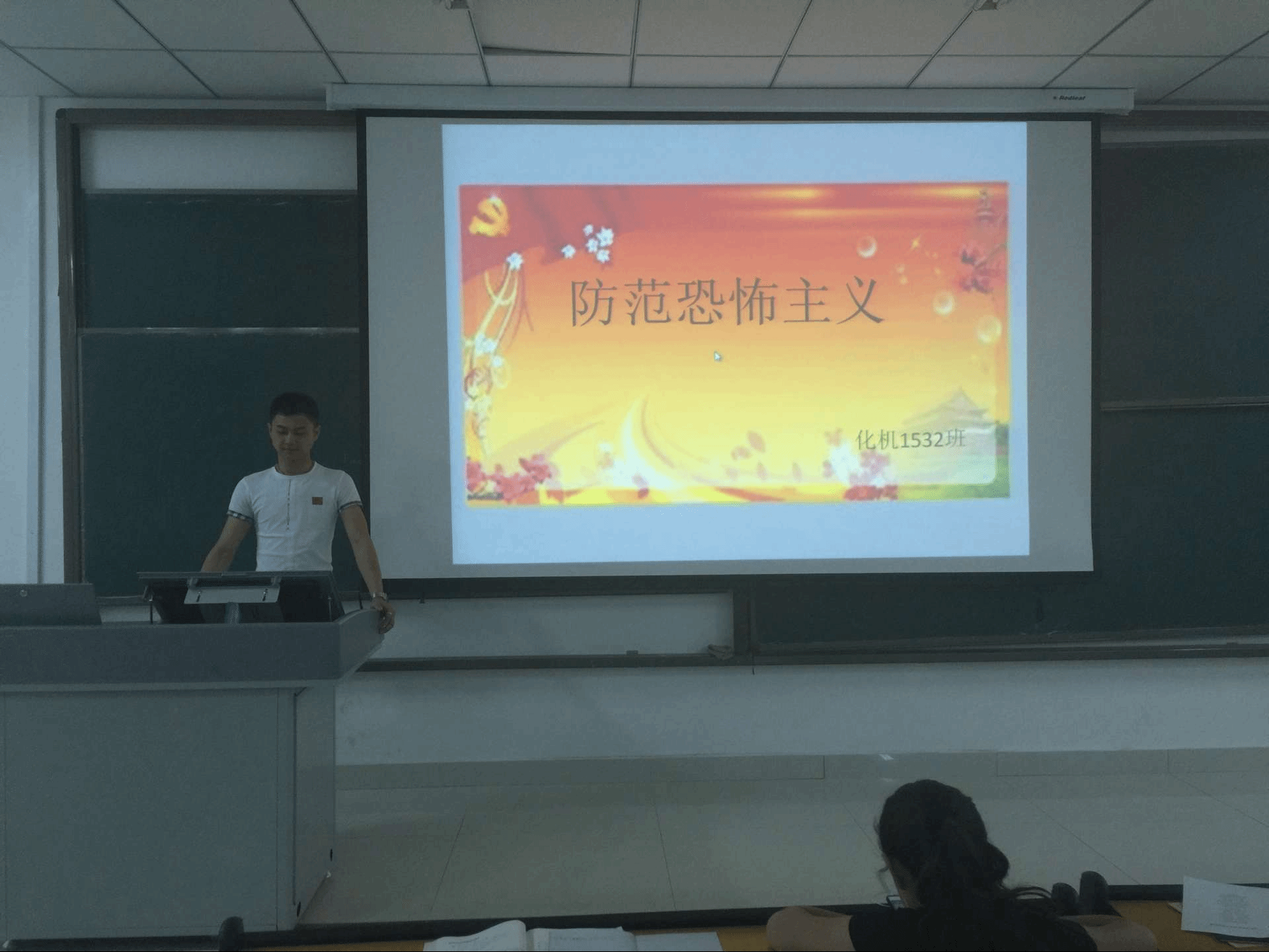 6月5日,机械工程系化机1532班在c6-1-203教室开展“防范恐怖主义”主题班会,本次班会课由王森同学主持,化机1532班全体同学共同参加。