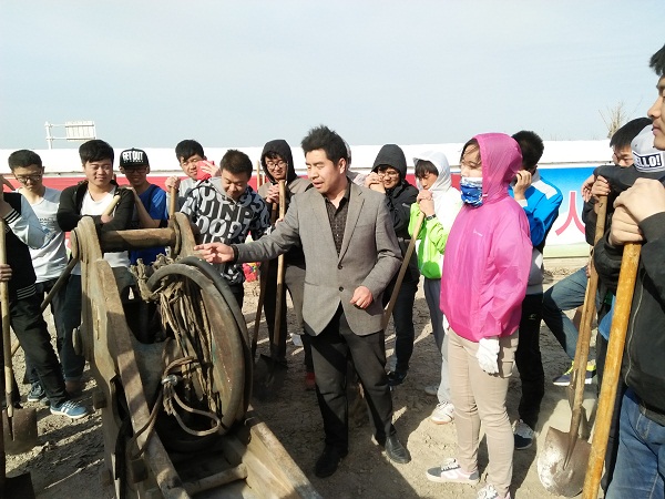在听到栽树这一消息时,机械工程系志愿者们异常兴奋,9日早上大家早早的在B1宿舍楼门口集合,随后李继霞老师一声令下全体志愿者浩浩荡荡的坐上了前往金龙湖的车。到达目的地后志愿者们一脸茫然,微风吹过漫天黄沙,大有一种风在吼、、、马在叫、、、黄河在咆哮之势,但志愿者们依然顶着风,扶的扶、埋的埋、风来了眼睛一闭,等风过后继续栽树,最终在大家的努力下一颗颗小树苗像一个个勇士伫立在金龙湖旁,期间李继霞老师与钟梦娇老师也参与其中与志愿者们乐在其中。之后等车之余,路旁的大型冲击钻引起了志愿者们的兴趣,钟梦娇老师提议让李继霞老师讲解他的工作原理,李继霞老师便重回课堂,为同学们讲解了它的组成部件及用途,志愿者们听到也很认真,最后大家拍照留念。